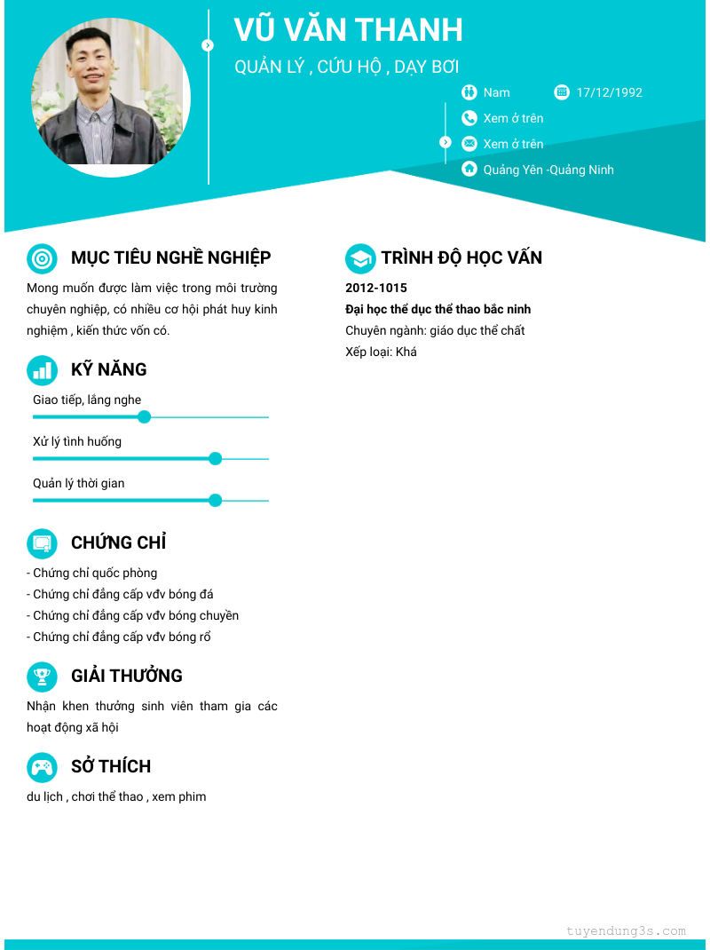 Mở xem thông tin đầy đủ ứng viên Vũ Văn Thanh chỉ với 2 điểm. Ứng viên được cập nhật ngày 03/10/2025