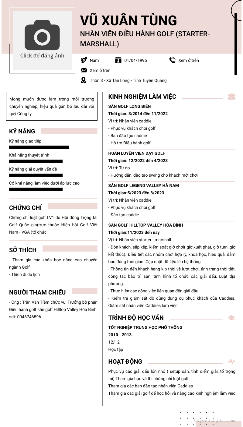 Vị trí: nhân viên điều hành golf (starter-marshall)